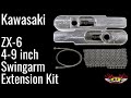 Our Kawasaki ZX-6R Ninja Swingarm Extensions are the highest quality bolt-on Kawasaki Ninja ZX-6R Swingarm Extensions available. Large 3/8 stainless steel fasteners are included - eliminating rusting and bending. These Kawasaki ZX-6R Swingarm Extensions stretch your motorcycle swingarm from 4 to 9 inches and require a longer chain and brake line (both sold separately).
