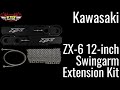 Our Kawasaki ZX-6R Ninja Swingarm Extensions are the highest quality bolt-on Kawasaki Ninja ZX-6R Swingarm Extensions available. Large 3/8 stainless steel fasteners are included - eliminating rusting and bending. These Kawasaki ZX-6R Swingarm Extensions stretch your motorcycle swingarm from 9 1/2 to 12 inches and require a longer chain and brake line (both sold separately).